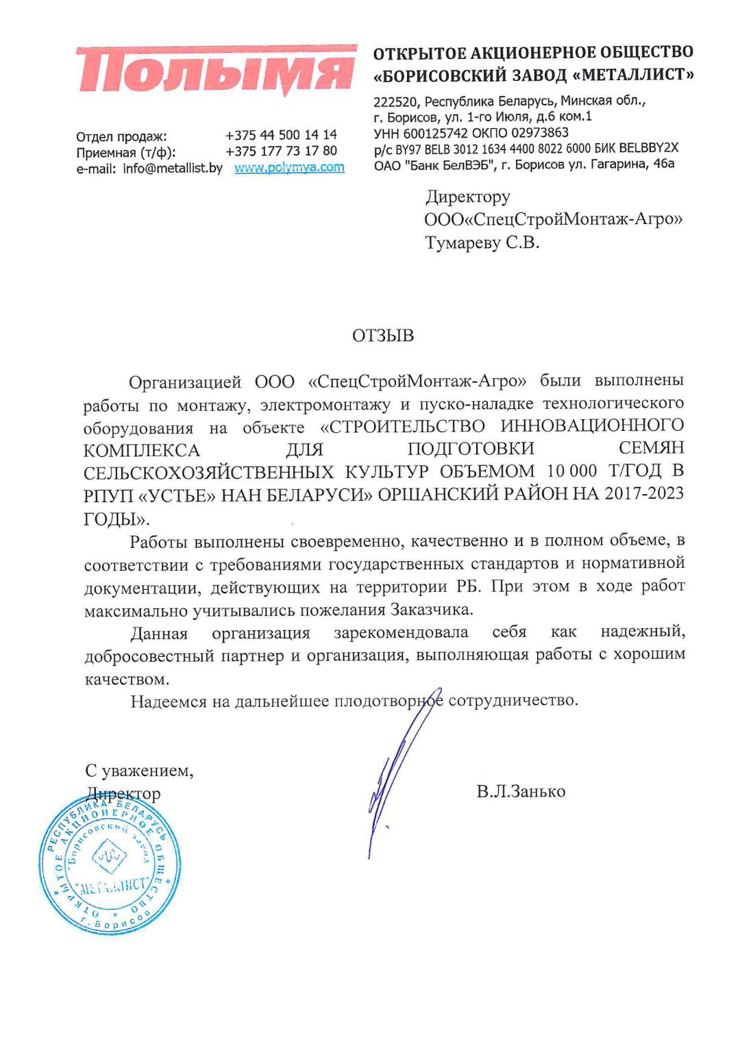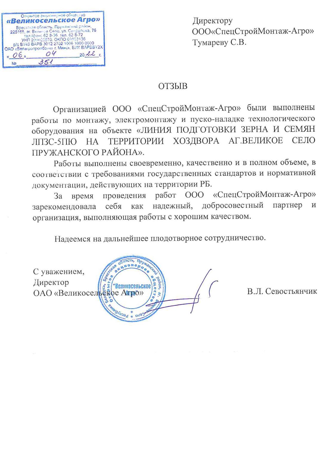 У нас имеются все разрешительные документы подтверждающие право на выполнение строительно-монтажных работ не только на территории Республики Беларусь , но и на территории Российской Федерации